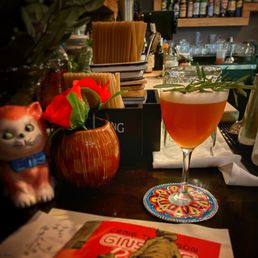 As per usual my favorite bar wish it was closer to where I live! They also have more small plate options which is great! Their attention to detail with music, cocktails, glassware, knowledge of many things never goes unnoticed and a great amount of cat statues around the room! As well as beautiful murals and Star Wars memorabilia. Can't wait to go back when I lived in Massachusetts I was there way more often! Impeccable service wonderful to watch the bartender move flawlessly they were from Arkansas awesome style! Music was phoenix, say anything, the strokes, Radiohead etc. they also have a special pop up nerd boi Monday? where they have board games, big screen video games and cocktails inspired by all the cool things!